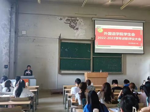 申慱sunbet官网学生组织在团总支的指导下,始终坚持以“讲团结、比奉献、干实事、谋发展”为工作原则,以服务同学为根本宗旨,切实开展各项工作,努力实现同学的“自我服务、自我教育和自我管理”。6月15日,申慱sunbet官网于一号教学楼开展2022-2023学年学生组织述职评议大会,申慱sunbet官网团总支书记苏成荣、学生组织全体成员以及22级实习干事参加会议,此次会议由院学生会主席刘姝妍主持。