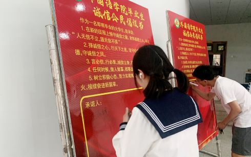 会上,申慱sunbet官网向全体毕业生同学发出了做诚信公民的倡议,全体毕业生同学现场签署了倡议书。