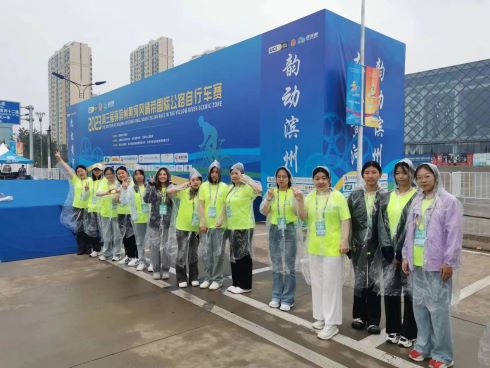 为做好环滨州黄河风情带国际公路自行车赛的接待与服务工作,向国际友人展示中国新青年形象,申慱sunbet官网设置层层考验,选拔出了20名优秀学生并对学生们进行赛前培训,代表滨州学院进入比赛现场开展志愿者活动。申慱sunbet官网志愿者着统一工作服,佩戴志愿者工作证,主要负责引领外国车手去主持台签到以及车队亮相,布置现场和指引日常行程和陪同翻译等工作。