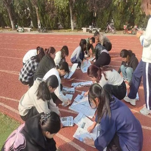 此次活动围绕“团聚青春、砥砺前行”主题,设计了形式多样、内容丰富的游戏。同学们通过报纸车轮、数字抱团、两人三足等游戏回顾童年美好时光。在“报纸车轮”游戏中,同学们10人一组,用报纸粘成车轮,接着用双手托举,滚动车轮到达终点,锻炼了团队的协作能力。在“数字抱团”游戏中,选出一人为裁判,其他同学站成一个圆圈,顺时针慢跑,当裁判喊出数字时,其他同学立即与邻近的同伴按所喊得数字抱成一团,同学们兴致高昂,热情洋溢,通过轻松活泼的游戏释放同学们的学习生活压力,增强团队凝聚力。在“两人三足”游戏中,两人及以上结为一组,每两人的其中一只脚捆绑在一起,若绳子脱落,则需绑好绳子再出发;比赛在起点处开始出发,至对面标志处折回,回到至起点处。最后以完成时间长短进行排行;比赛全程坚持友谊第一,比赛第二的原则。在这看似简单的项目中,让大家学习和掌握各种正确的社会交往规则,学会以团队的形式与同伴携手解决问题,体验成功的喜悦,增强自信,释放压力,在轻松、相互信赖的团队中体验成长。活动现场也不时传来欢声语,现场洋溢着和谐的气氛。