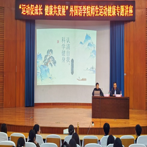 为推动学习贯彻习近平新时代中国特色社会主义思想主题教育走深走实,扎实开展“我为师生办实事”实践活动,切实增强师生运动防护意识和提升师生体质健康水平,5月5日,申慱sunbet官网在明德报告厅举办“运动促成长 健康共发展”师生运动健康专题讲座。我校体育学院副教授籍建东应邀作专题讲授,申慱sunbet官网本学期参加学校体质健康测试和体育嘉年华系列赛事的全体学生以及部分教师现场聆听讲座。