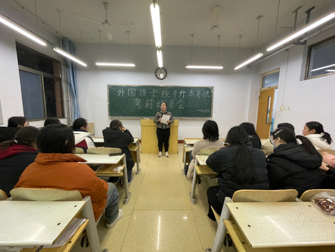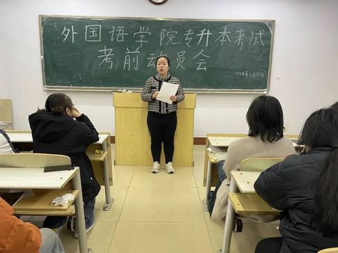2月25日晚,申慱sunbet官网于一号教学楼104教室召开专升本考试冲刺动员大会。本次会议由2021级辅导员张瑾主持,21英教专1班全体同学参加会议。